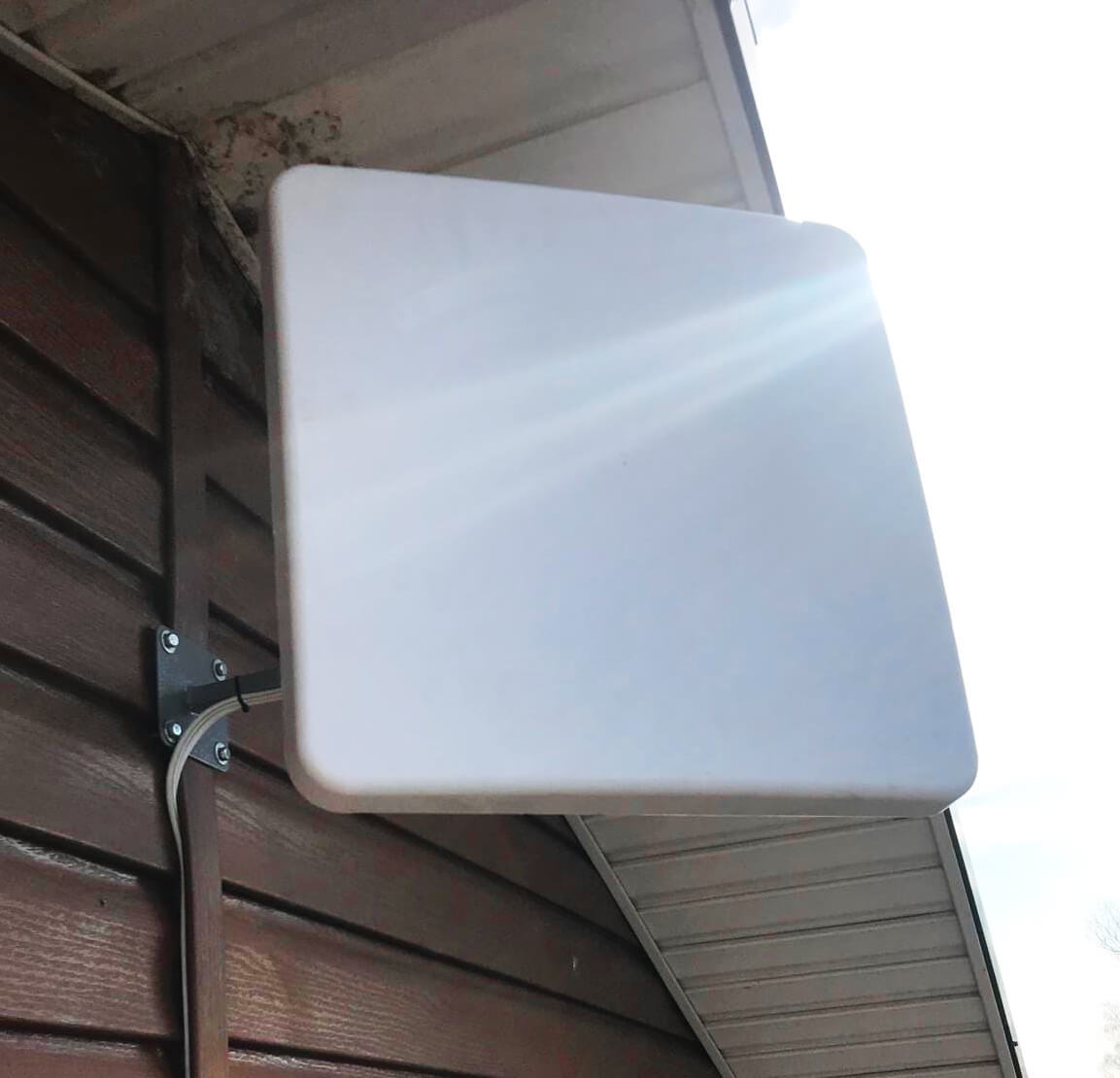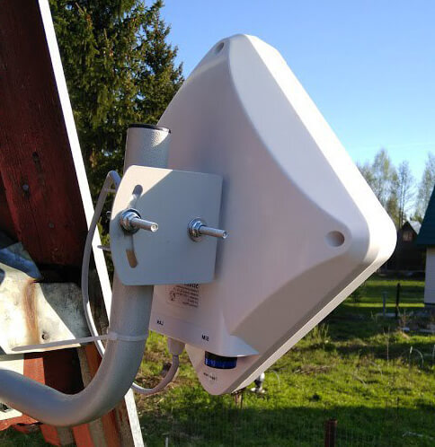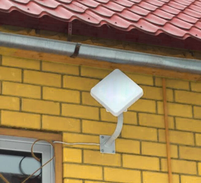 Устанавливаем направленную антенну снаружи здания. Она принимает сигнал от оператора.